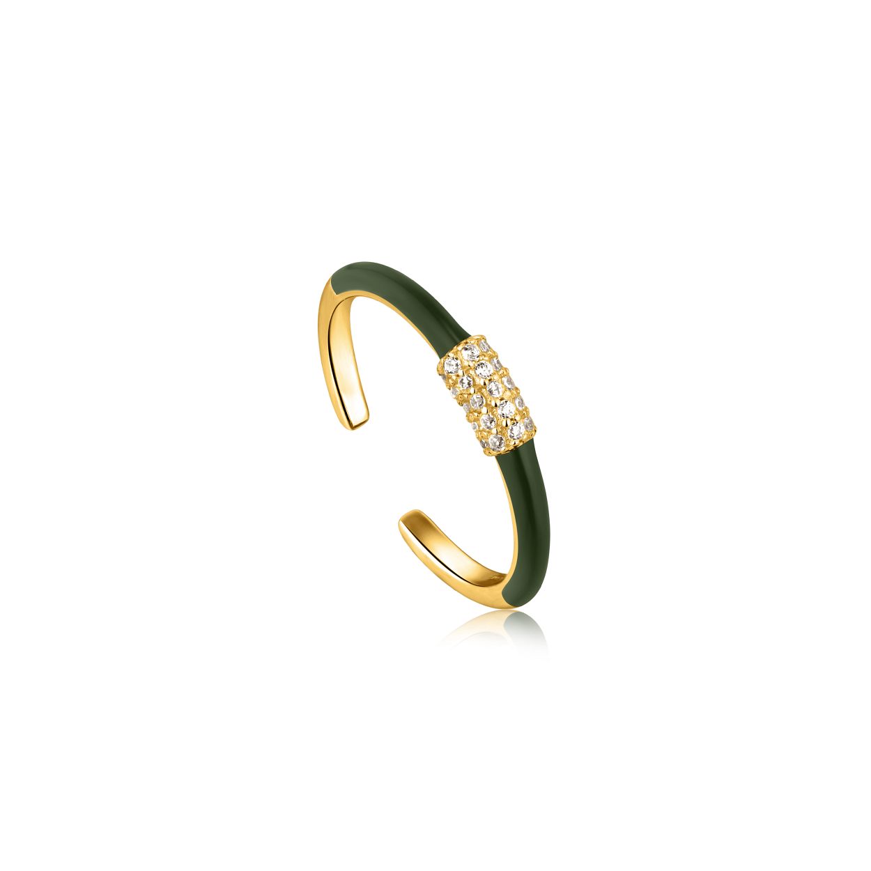Deze 14K gold plated Forest Green Enamel Carabiner Gold Adjustable Ring van Ana Haie is een echte eyecatcher om je vinger. De ring bestaat uit groen emaille met een band van prachtige zirkonia’s. Geïnspireerd op de catwalk ‘joyfull glam’ komt de Bright Future collectie voort uit het verlangen naar positiviteit na een onzekere periode. De collectie biedt een prachtig kleurenpallet variërend van zeegroen, tot framboosrood. Deze ring is verstelbaar, waardoor het vinden van de juiste maat gemakkelijker is dan ooit. Door onderaan de band de twee uiteindes naar elkaar toe te knijpen of wijder te buigen maak je de ring eenvoudig passend voor elke vinger.