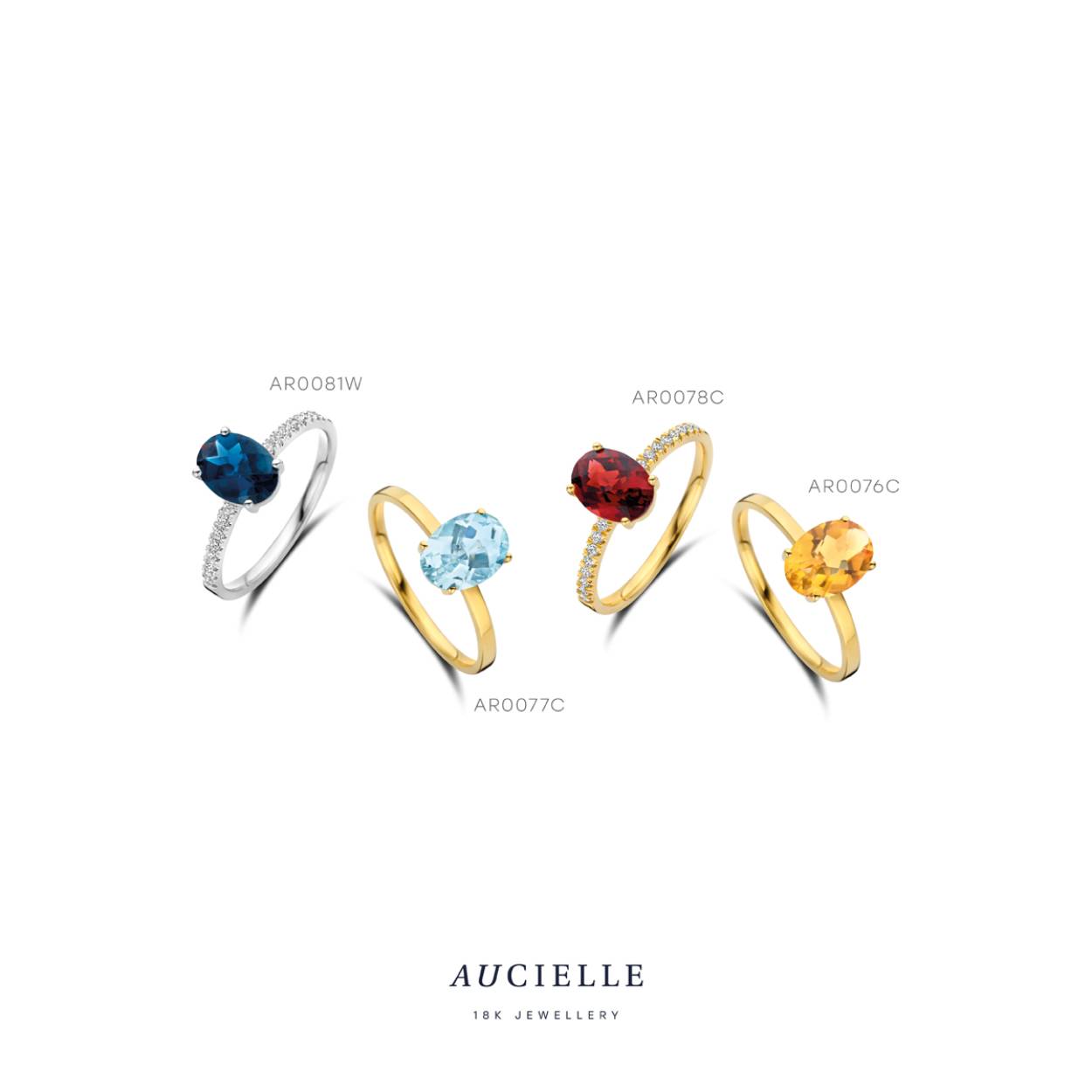 Aucielle ring goud 18k, met ovaal rhodoliet en zirkonia steentjes