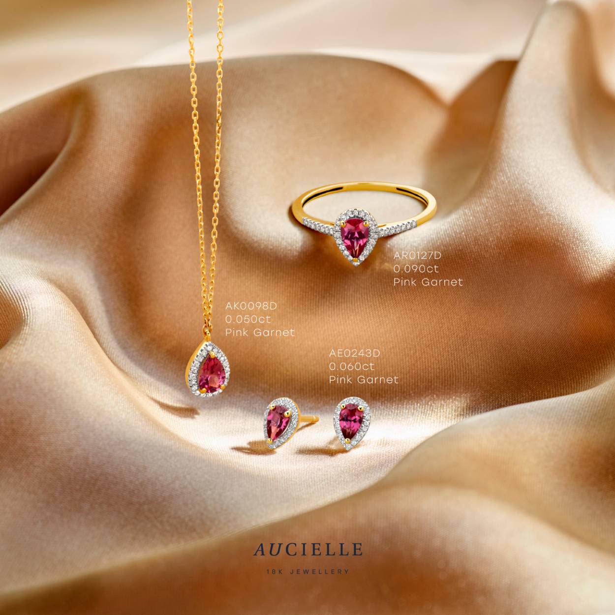 Aucielle ring goud 18k, entourage pink, 0.09ct