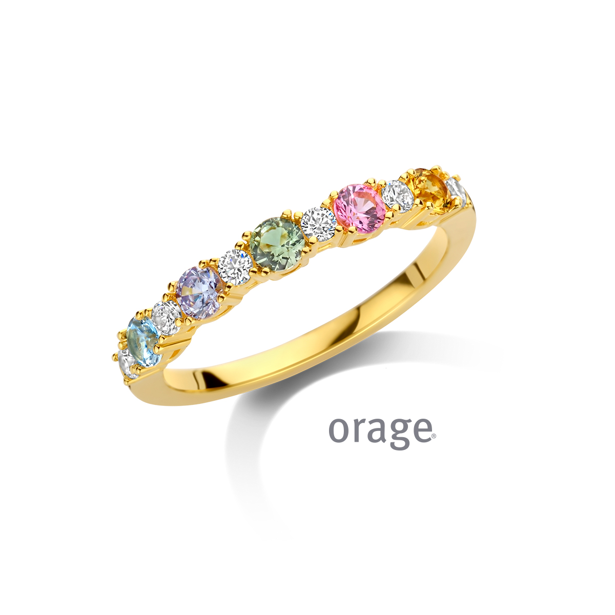 Orage ring verguld geel goud met gekleurde zirkonia steentjes