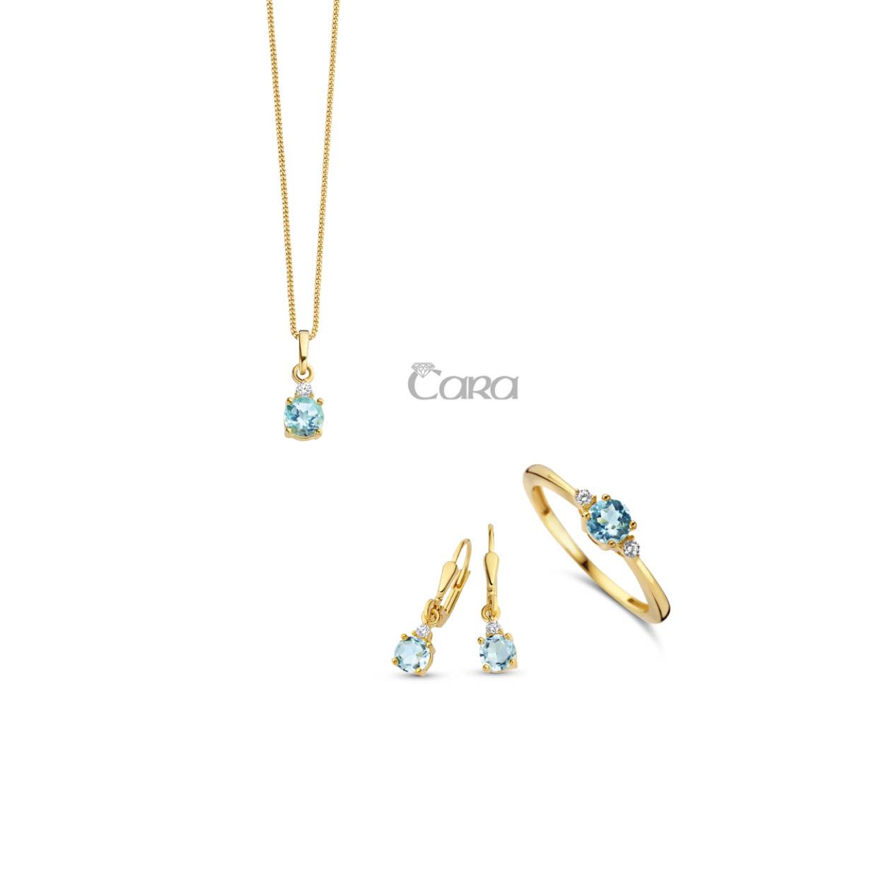 Cara oorslingers goud 18kt gezet met blauwe topaas en zirconia