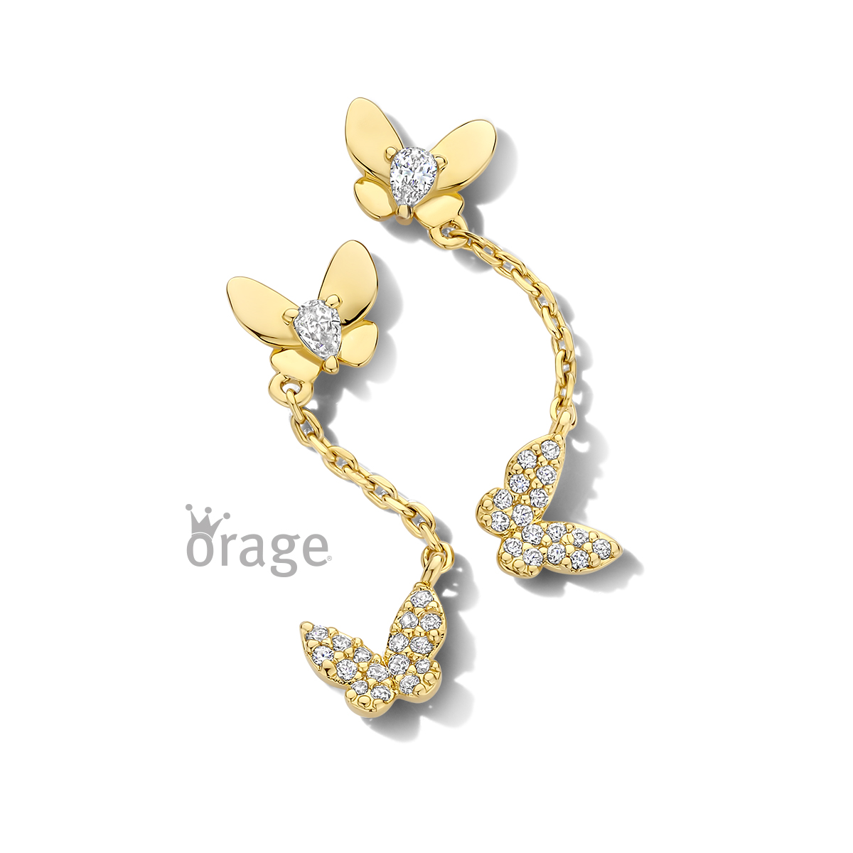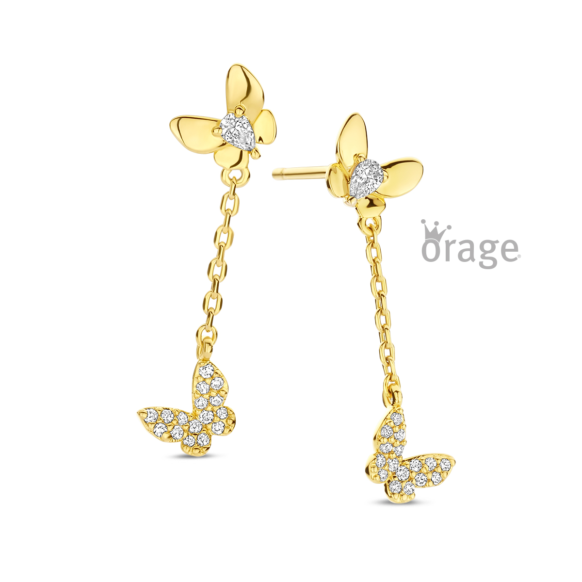 Orage Kids oorhangers verguld geel goud met zirkonia