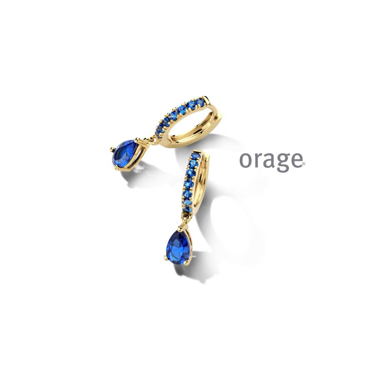 Orage oorringen blauw verguld geel goud cz
