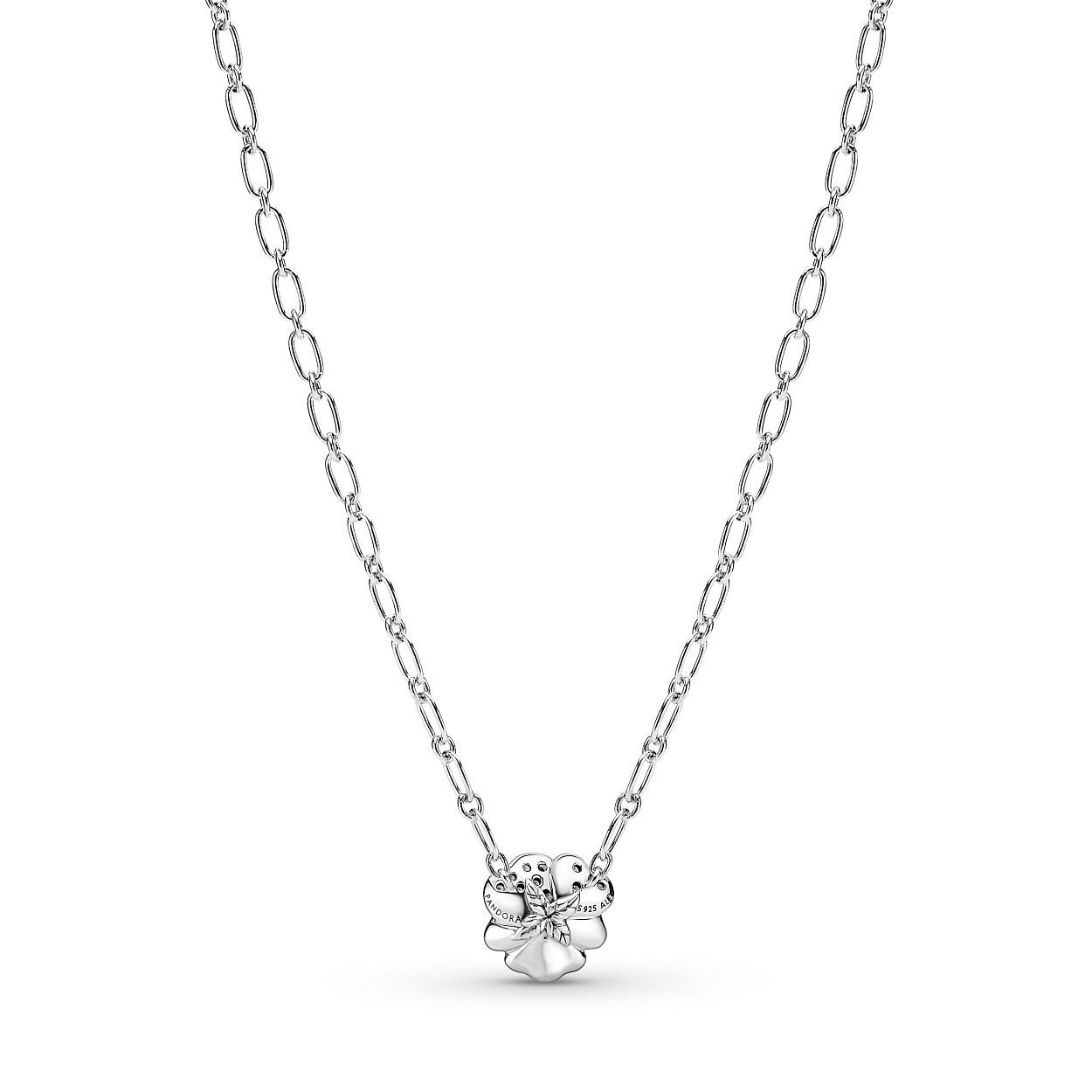 Deze collier is van het merk Pandora. Het is een damessieraad gemaakt van edelstaal. De collier is zilver van kleur.