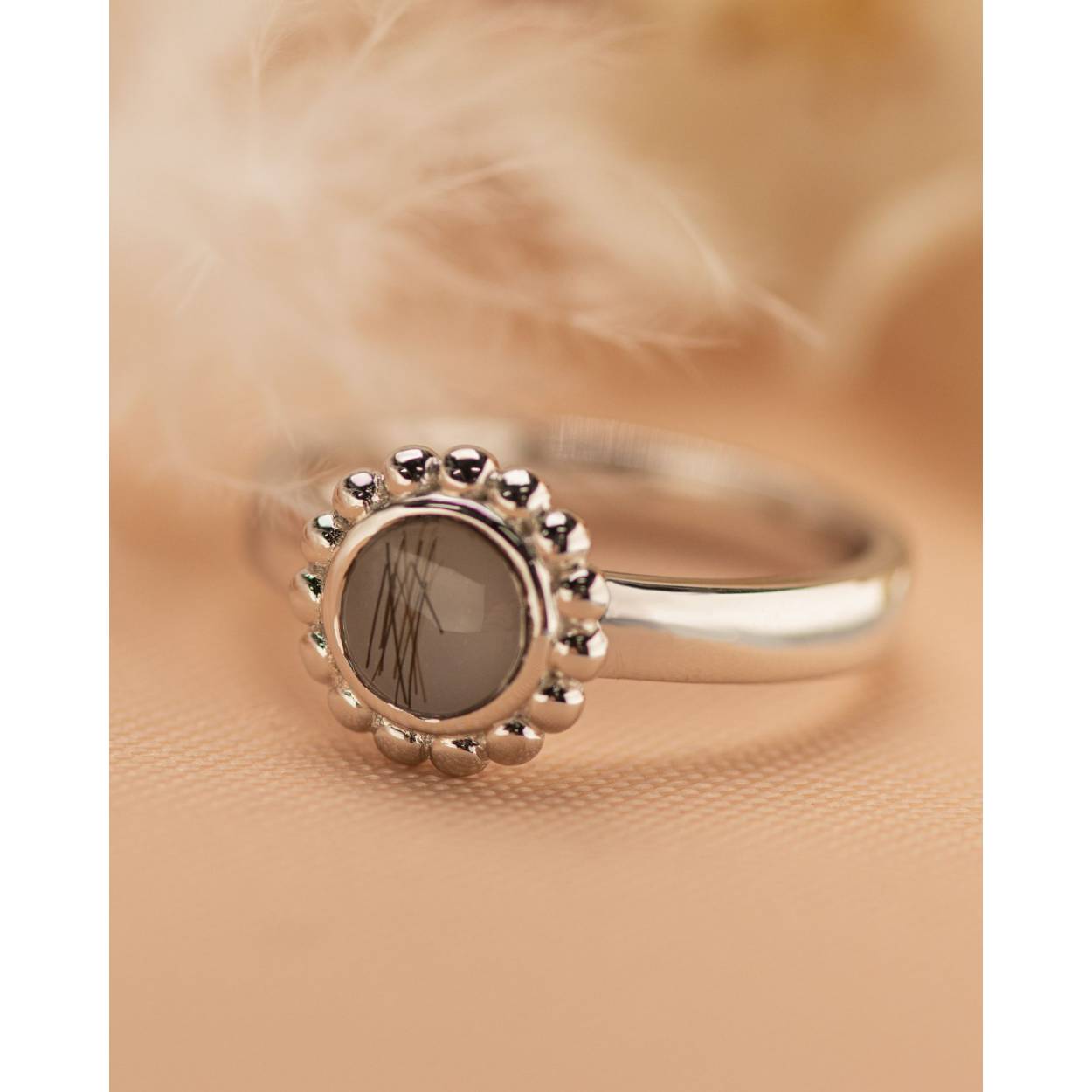 Ring met parelrand en rond kastje. Dit sieraad wordt zichtbaar aan de bovenkant gevuld met as en wordt vermengd met onze speciale hars.